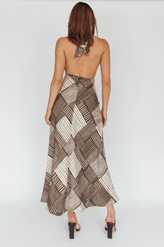Shay Cowl Neck Maxi Geometric Print Brown