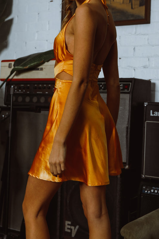Davina Square Neck Cut Out Multi Ring Long Sleeve Bodycon Mini Dress Blue