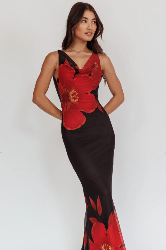 Sunny Halter Neck O-Ring Maxi Dress Floral Pink