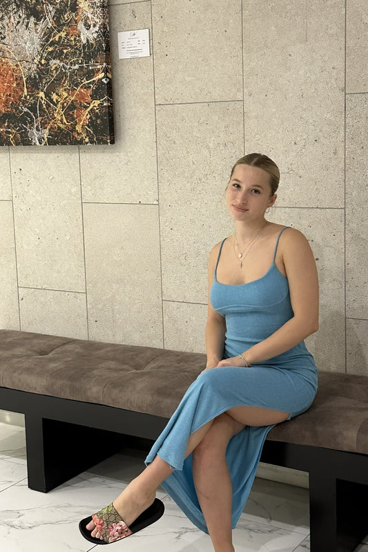 Jocelyn Tie Shoulder Floral Mini Dress Blue