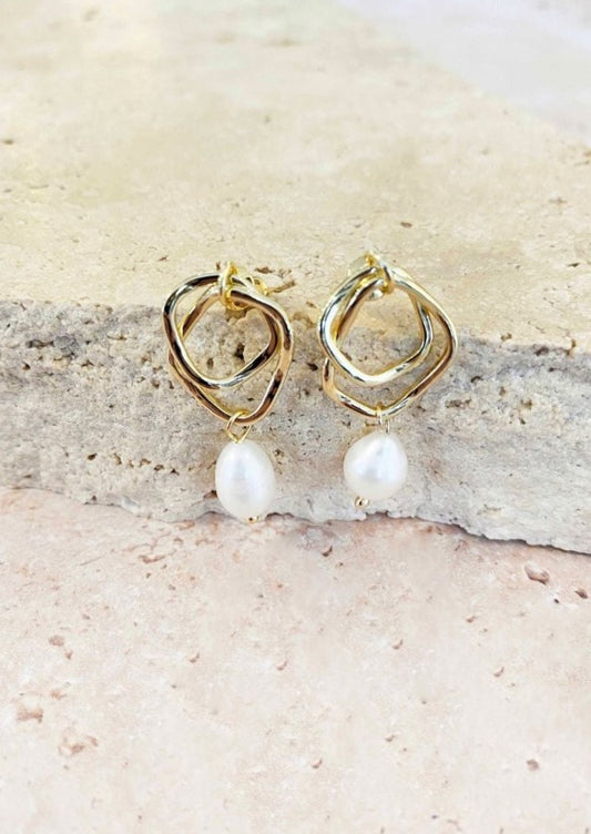 Drew Minimal Diamante 18K Gold Plated Earrings