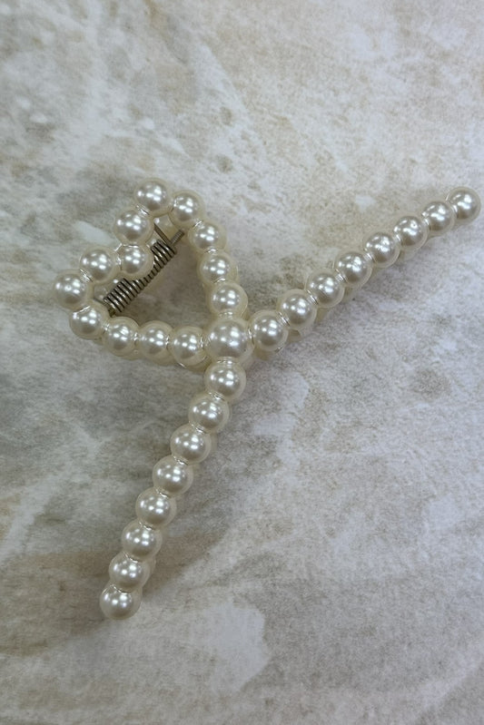 Double Pearl Loop Claw Clip White