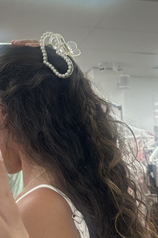 Pearl Love Heart Claw Clip