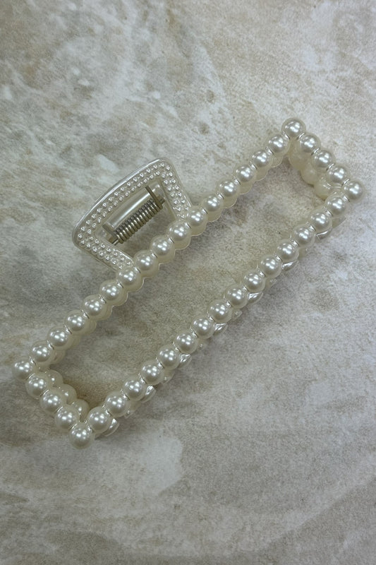 Pearl Rectangle Claw Clip White