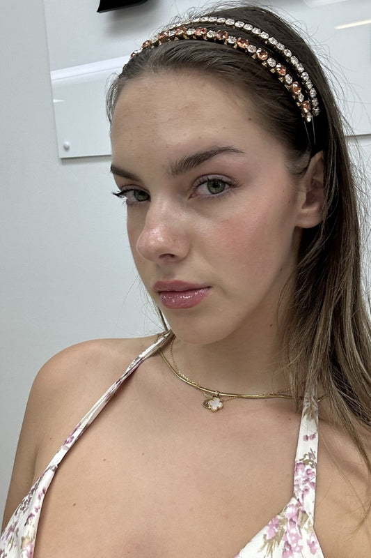 Rebecca Large Pink Jewel Small Rhinestone Double Headband