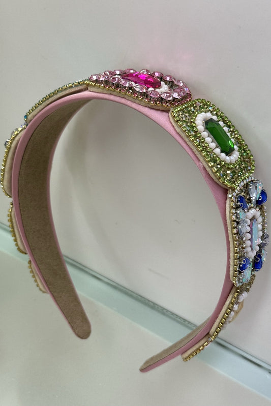 Reina Rectangular Jewelled Headband Multicolour Pink