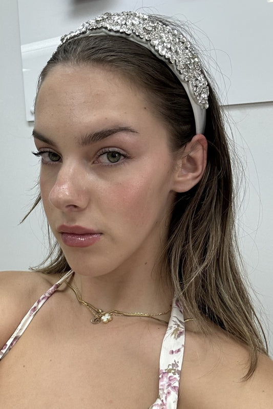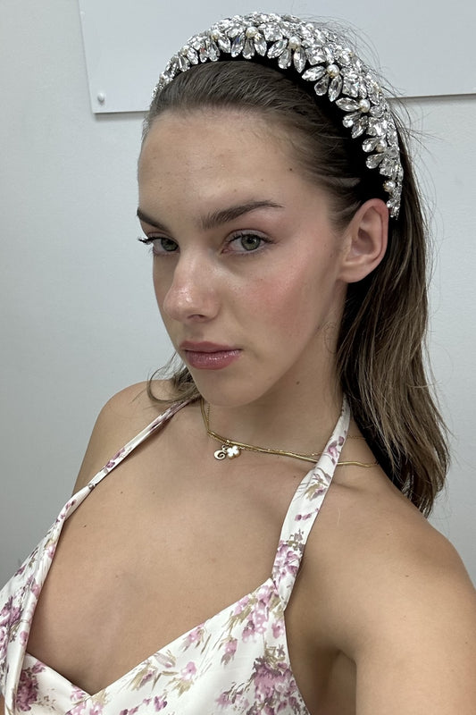 Sabrina Flower Big Jewel Headband Clear Quartz