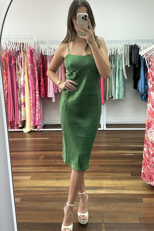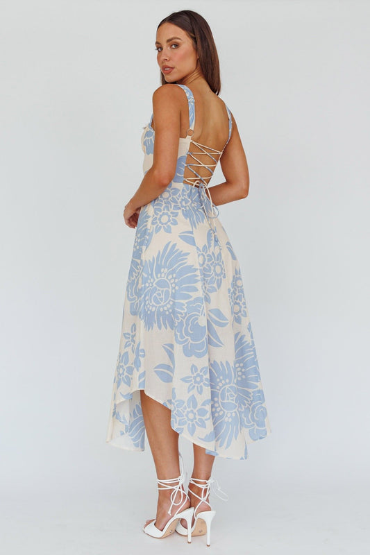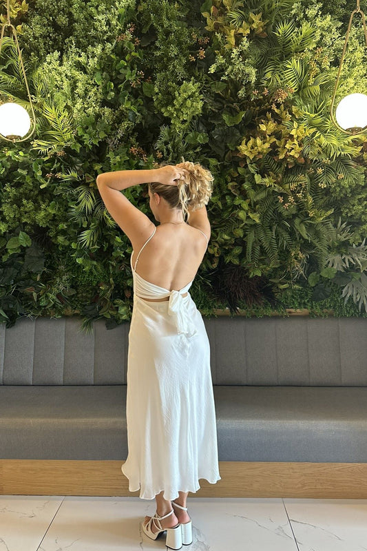 Skyla Diamonte Cross Back Midi Dress Satin Pale Blue