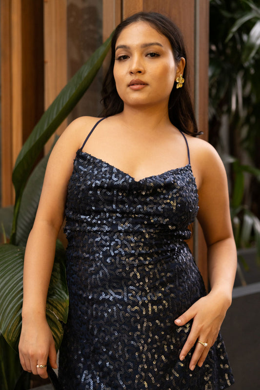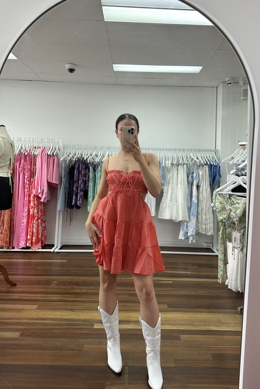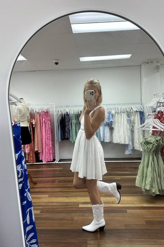 Jocelyn Tie Shoulder Floral Mini Dress Blue
