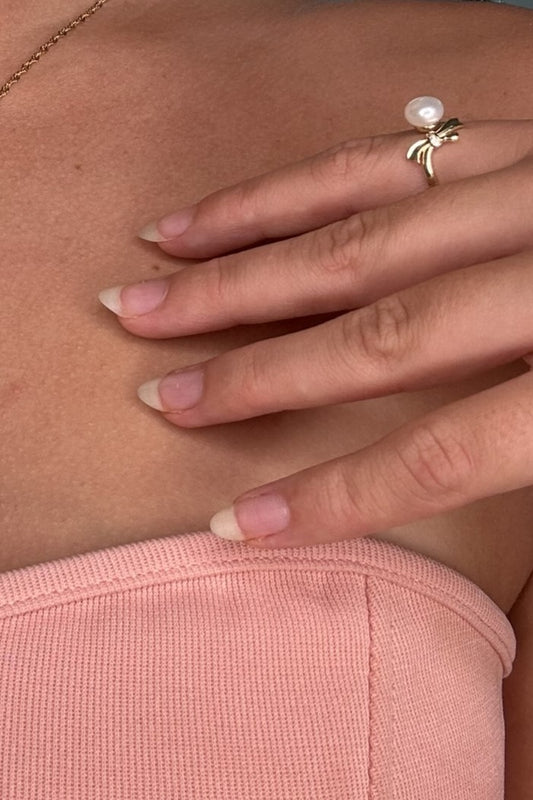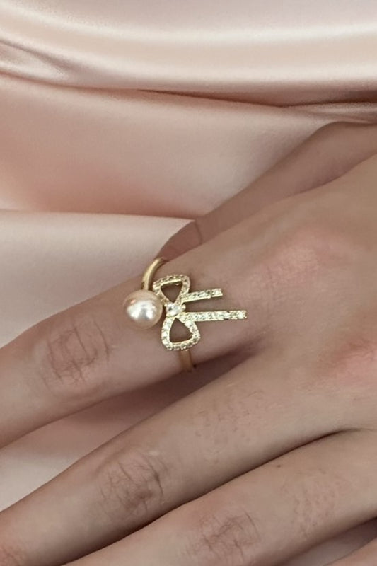 Pink Pearl Bow Ring Gold