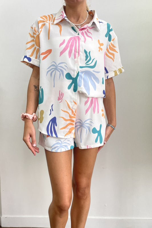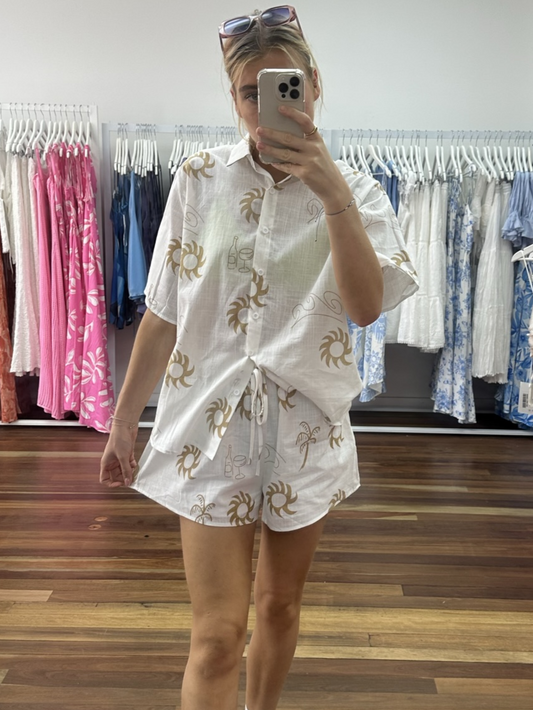 Moana Sun & Wave Gold Print White Oversized Shirt