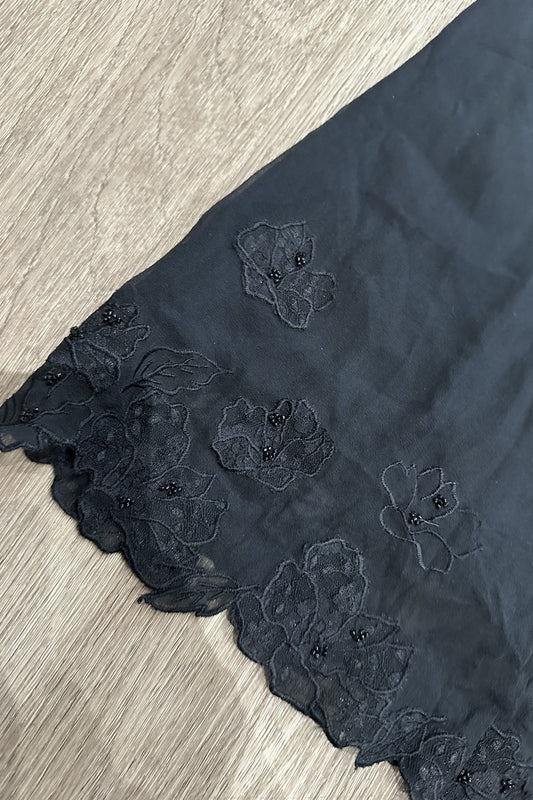Vintage Beaded Embroidered Midi Skirt Black