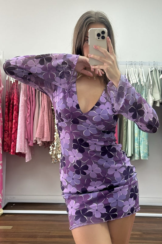 Adalynn Long Sleeve Crop Top Mesh Purple