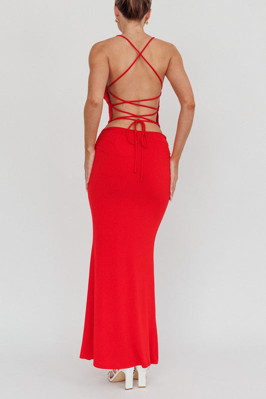 Cherry Rosette Backless Maxi Dress